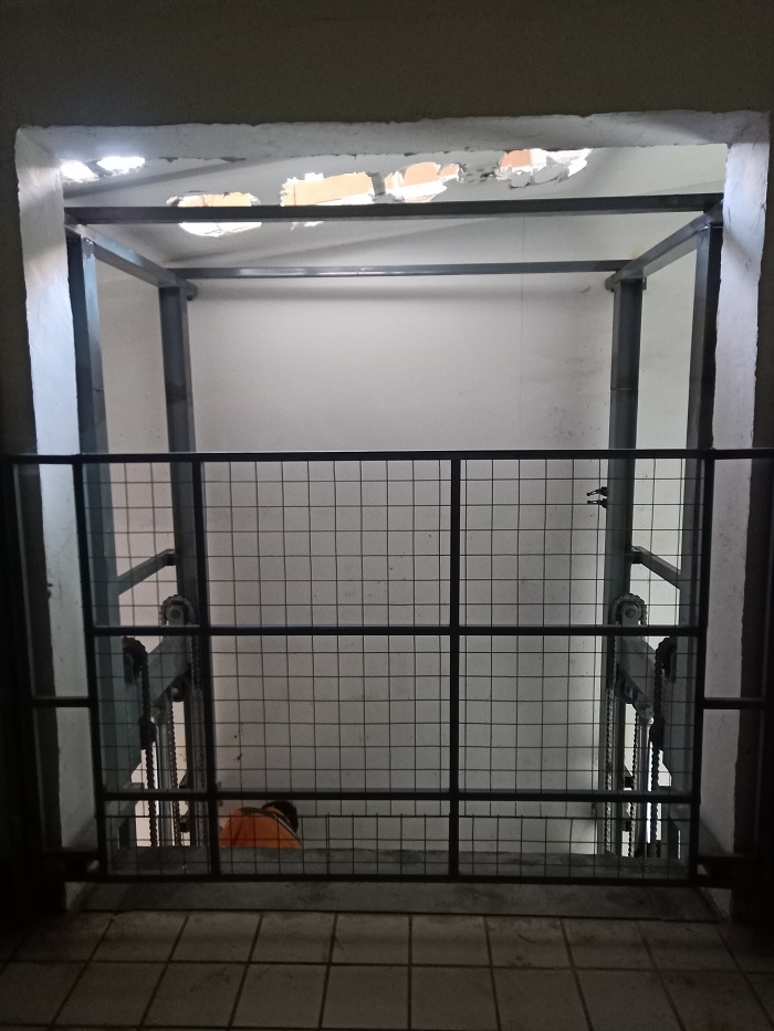 萬福隆超市由于老店進行改造,重新規劃,訂購導軌升降貨梯用于賣場與倉庫之間的貨物轉運,現安裝完畢投入使用中、、、