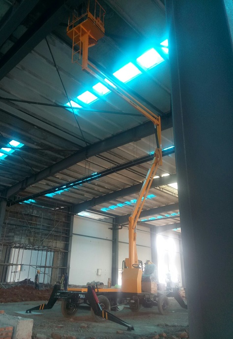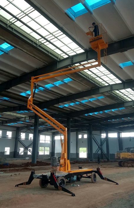 熱烈祝賀建筑公司訂購柴油機曲臂式升降平臺200kg-14米一臺,已順利交貨,投入使用中!